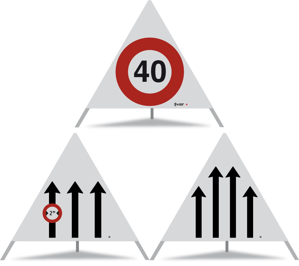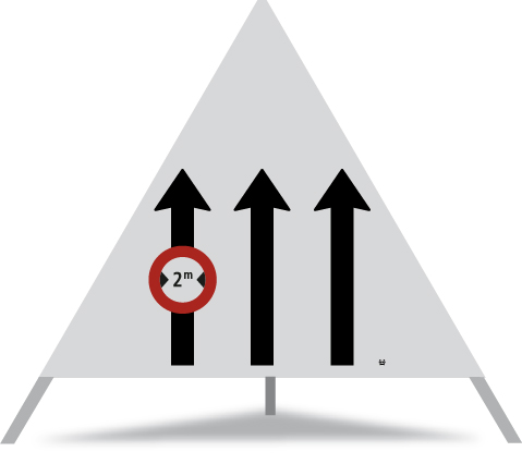 Anz.Fahrstreifen 3-spurig geradeaus (4-77-11.1) + 2.18 R2.110 (Construction)