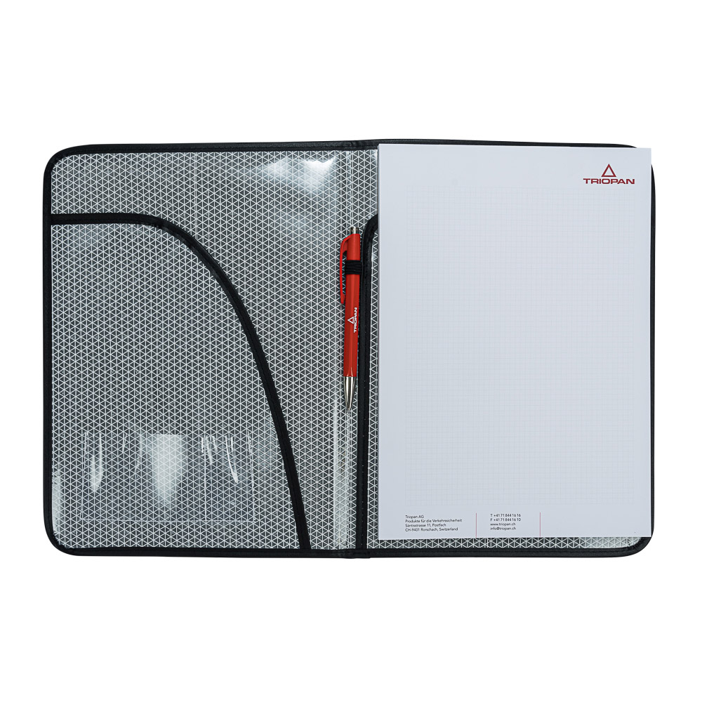 Mit unseren Schreibmappen aus Triopan R2-Material sind Sie SICHER unterwegs und werden GESEHEN, ob auf der Baustelle im Einsatzwagen oder im Büro.
