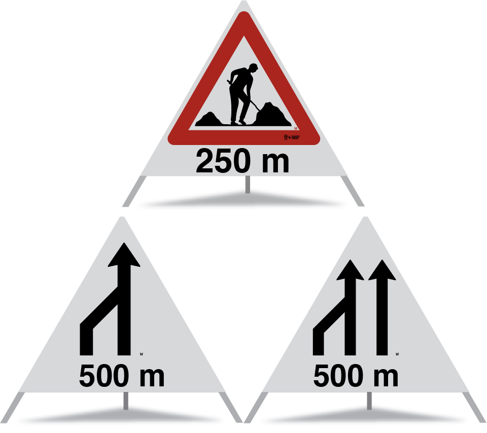 Anz.Fahrstreifen 3 auf 2 links 500m (4-77-18) R2.110 (Construction)