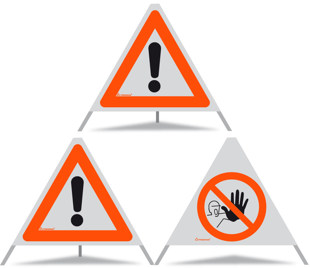 TRIOPAN Faltsignale sind für die kurzfristige Signalisationslösung von Gefahrenstellen. Robust, rasch montiert und dank eines Feder-Mechanismus faltbar und somit platzsparend zu verstauen. Jedes TRIOPAN Faltsignal wird in einem Schutz-Etui geliefert. Das TRIOPAN Faltsignal ist in verschiedenen Grössen erhältlich: 40 / 60 / 70 / 90 und 110 cm. TRIOPAN Faltsignale mit standardisierten Aufdrucken sind im Online-Shop verfügbar, individuelle Aufdrucke auf Anfrage.